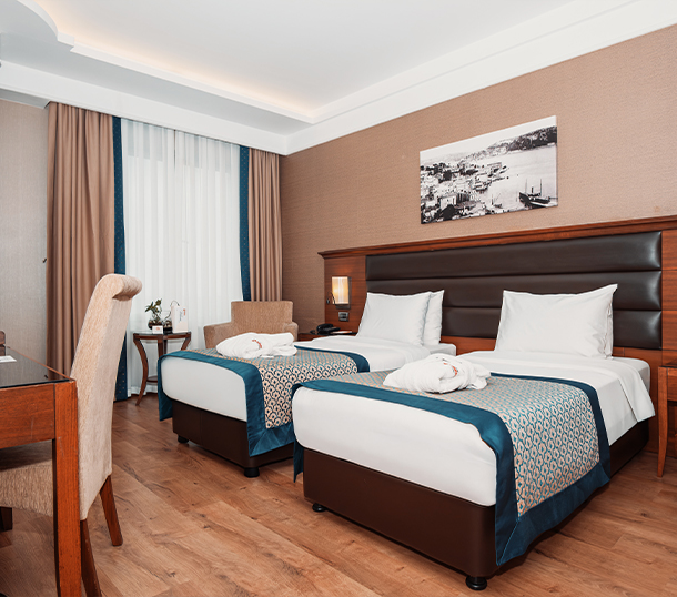 Otel, 70 Standart Oda, 25 Superior Oda, 1 Erişilebilir Oda, 20 Corner Suit ve 2 Makel–Topkapi Suit olmak üzere toplam 118 özenle tasarlanmış odaya sahiptir. Tüm odalarda klima, uydu kanallı düz ekran TV, minibar, elektrikli su ısıtıcısı ile ücretsiz çay ve kahve ikramı bulunmaktadır. Banyolar duş, saç kurutma makinesi, ücretsiz banyo malzemeleri, bornoz ve terlik ile donatılmıştır. Odalar şehir manzarasına sahip olup, bazı odalar ayrıca deniz manzarası sunmaktadır.